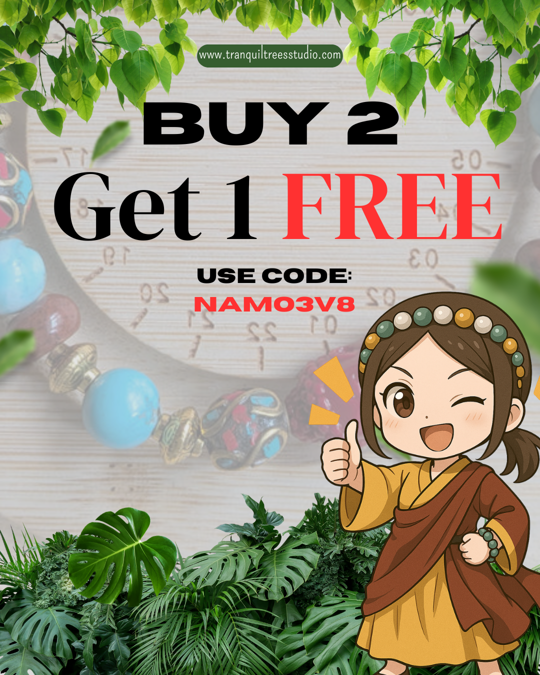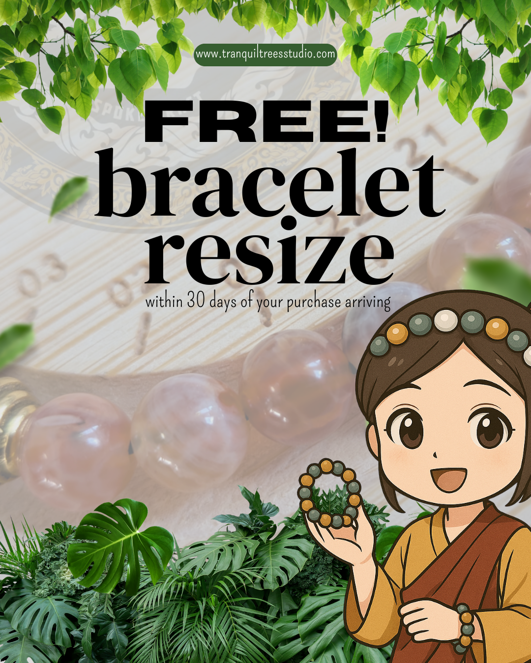 Our jewellery collection blends mindful tradition with modern style, featuring handmade bracelets, mala beads, and amulets inspired by Buddhist and wellness practices.