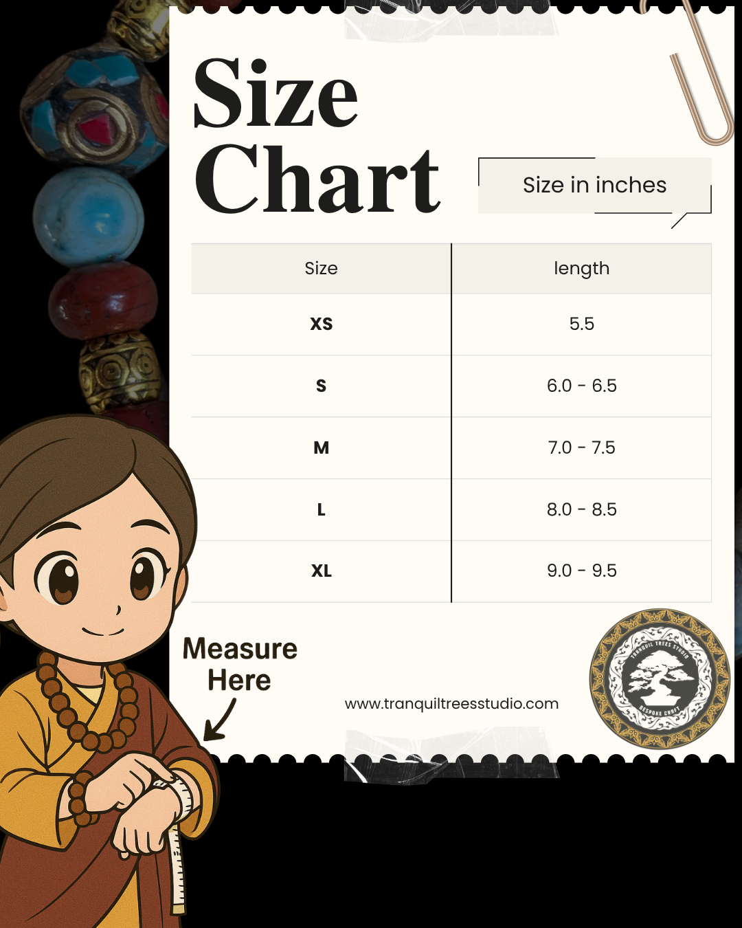 This handcrafted bracelet from Tranquil Trees Studio blends timeless symbols of strength, fortune, and inner peace.